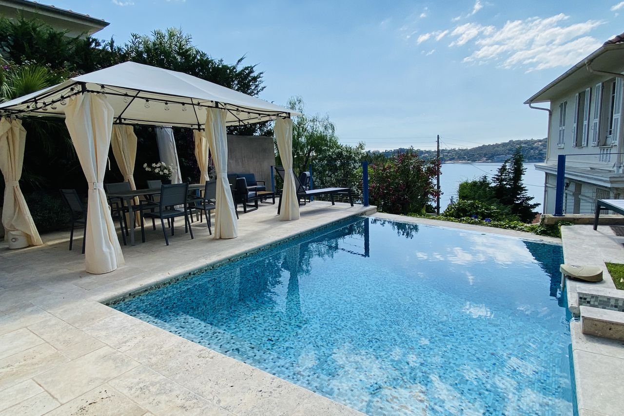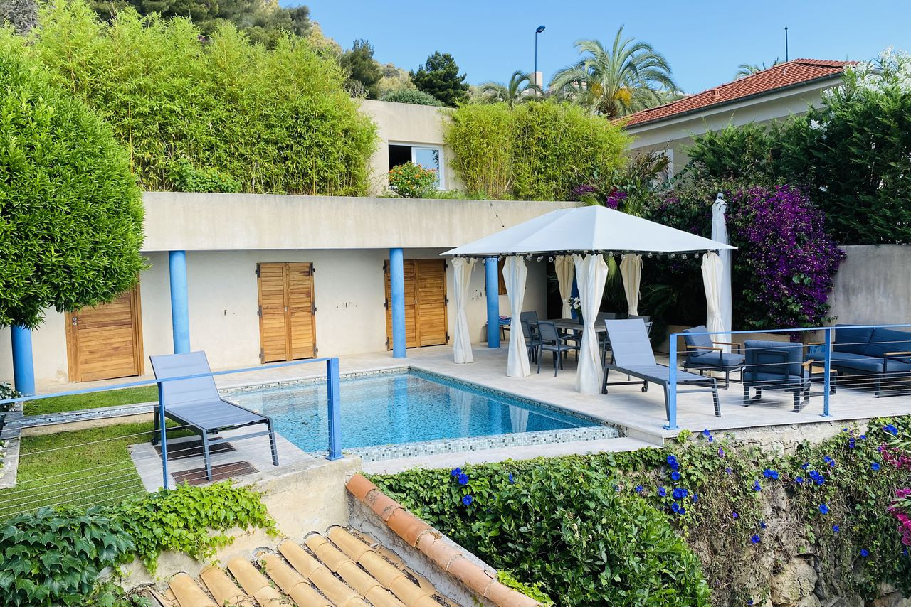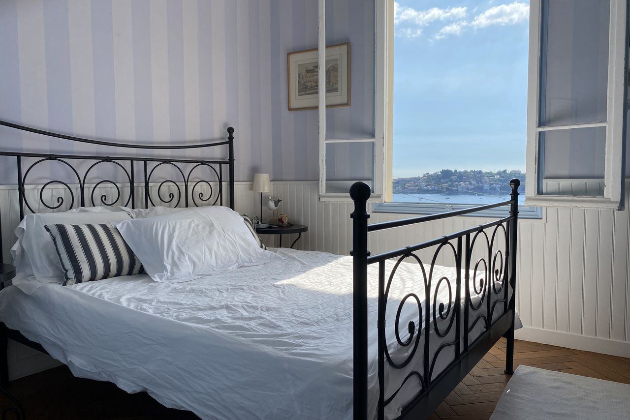 This one-time residence of French artist Jean Cocteau has dreamy views over Villefranche-sur-Mer bay and Cap Ferrat. It’s filled with interesting art, original fittings and has a cool bohemian feel. Enjoy aperitifs in the garden, gather for meals out on the terrace, beside the pool or in the dining room – the kitchen is well kitted out and easy to use. Big bedrooms, two inside, one out, have sweeping sea views.